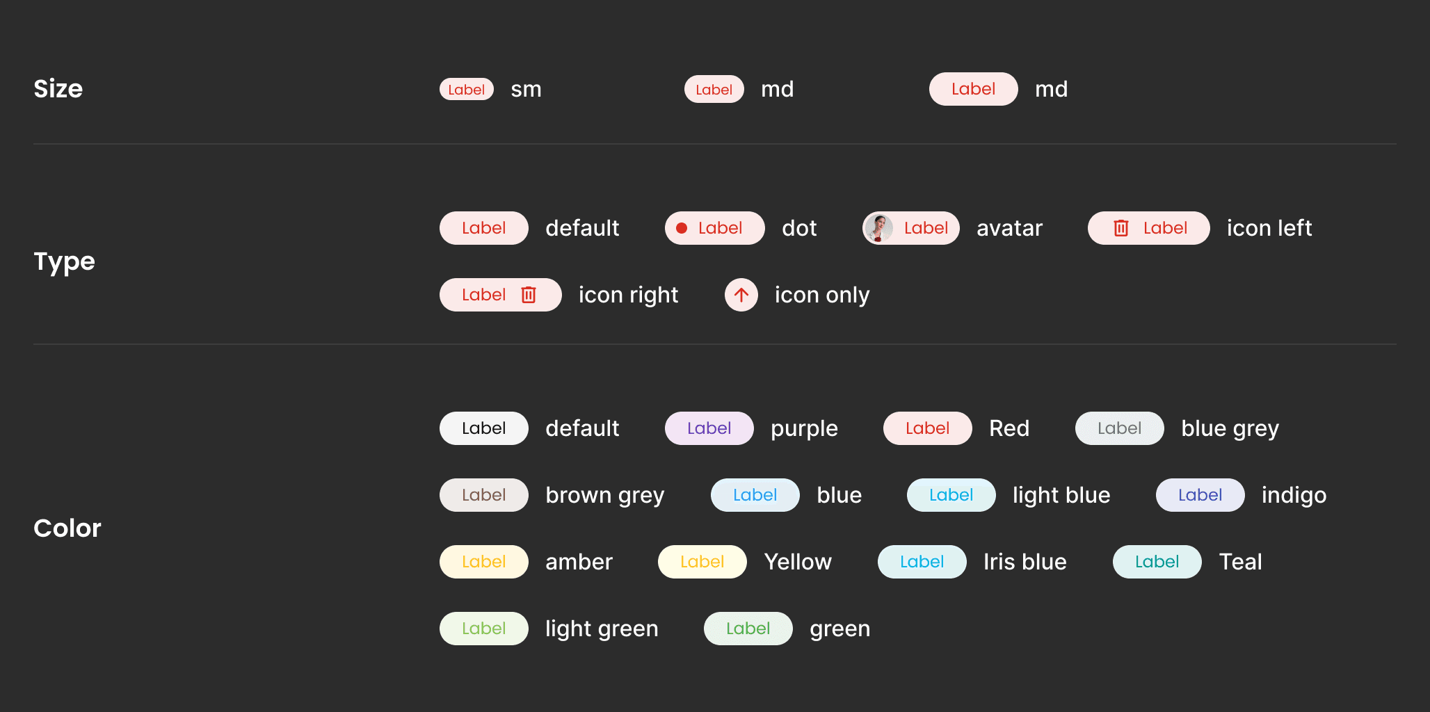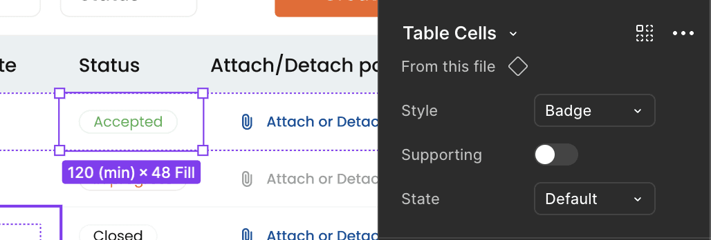 As part of the design system, badges were standardised. Each badge follows consistent padding, typography, and corner radius tokens, ensuring visual alignment across tables, cards, and headers.