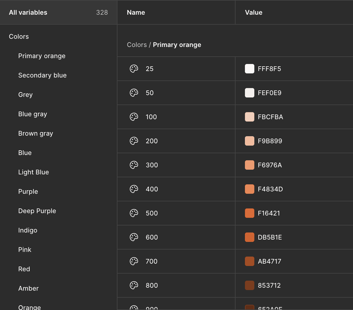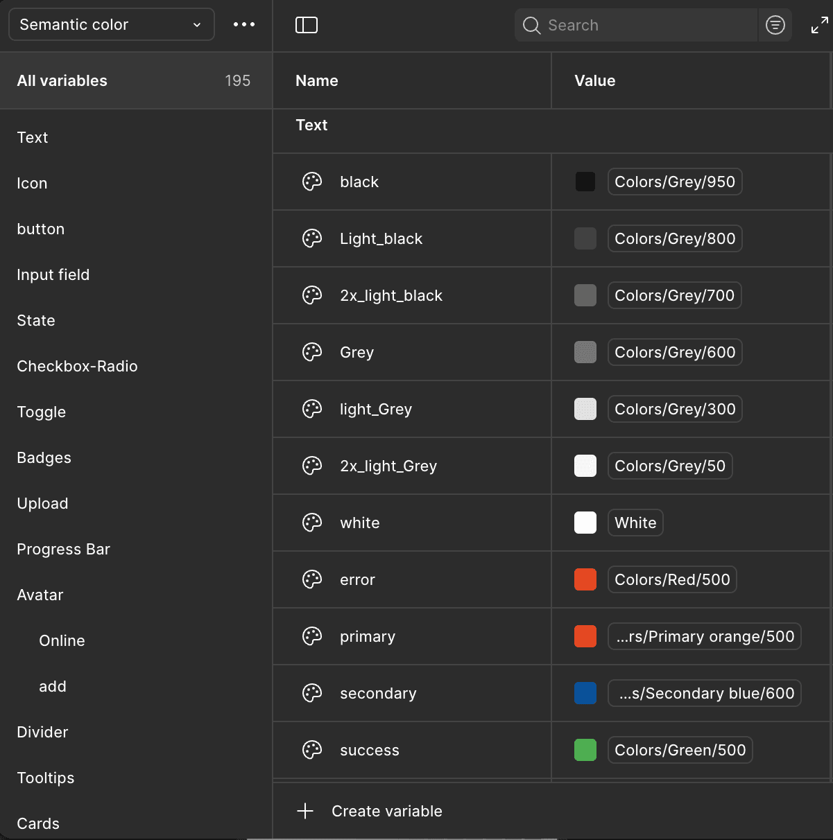 The original Yappes color system focused on bright orange and blue but lacked structure for accessibility and semantic usage in the new design system, I expanded the palette into primary, secondary, primitive, semantic scales, each with tone steps (25–900) to enhance contrast control and theming flexibility.