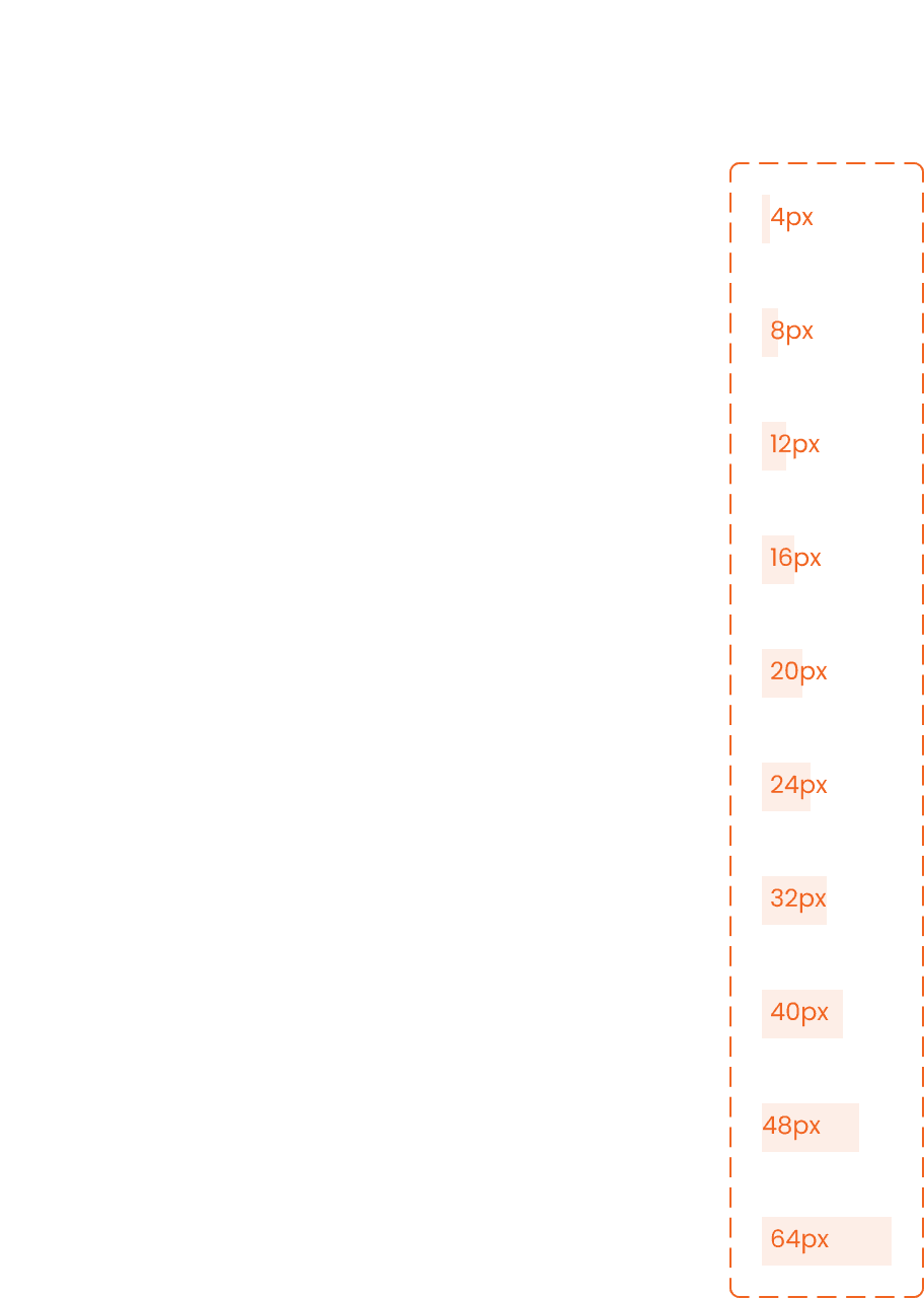 To remove guesswork and maintain consistency, spacing is defined using a modular scale based on 4px. This system standardises padding, margins, and gaps across components and layouts.