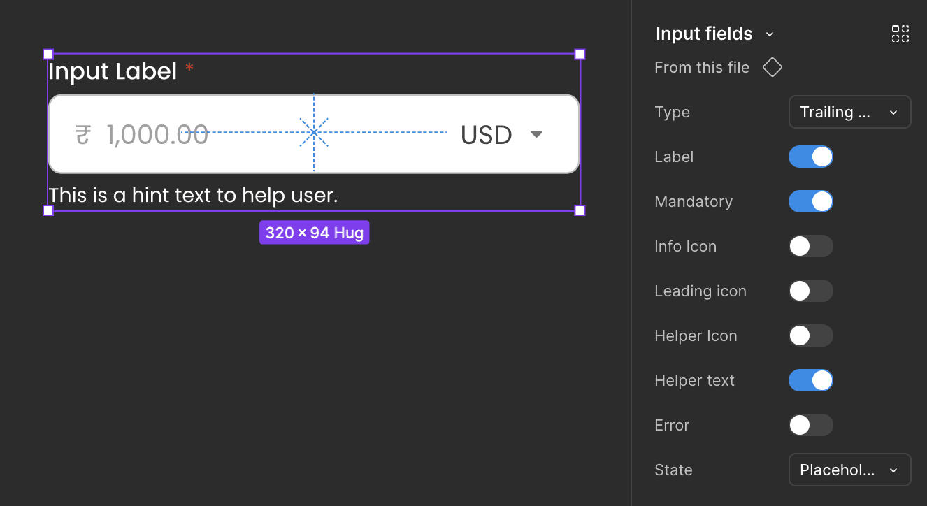 Defined a unified input with a clear anatomy: label, field container, placeholder/input text, helper text, error message, and optional leading or trailing icons.