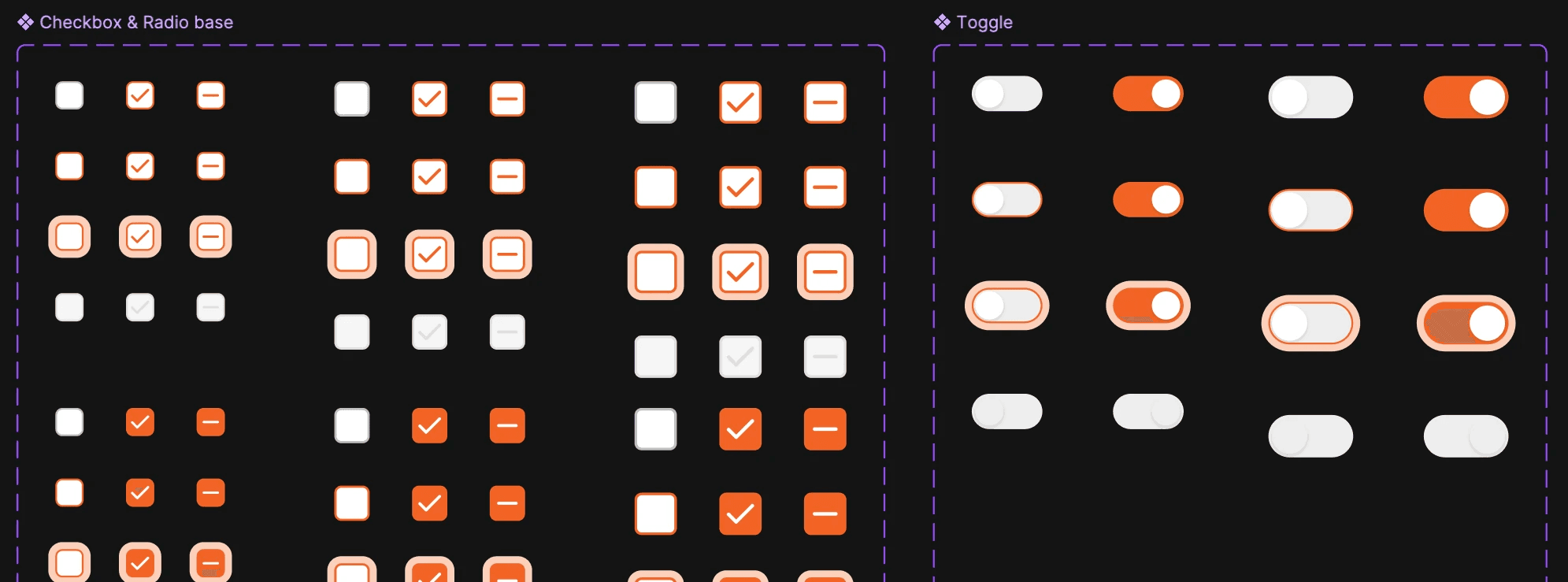 Checkboxes and radios now follow a shared anatomy with predictable spacing, clear labels, optional supporting text, and full state coverage - default, hover, focus, selected, indeterminate, error, and disabled.