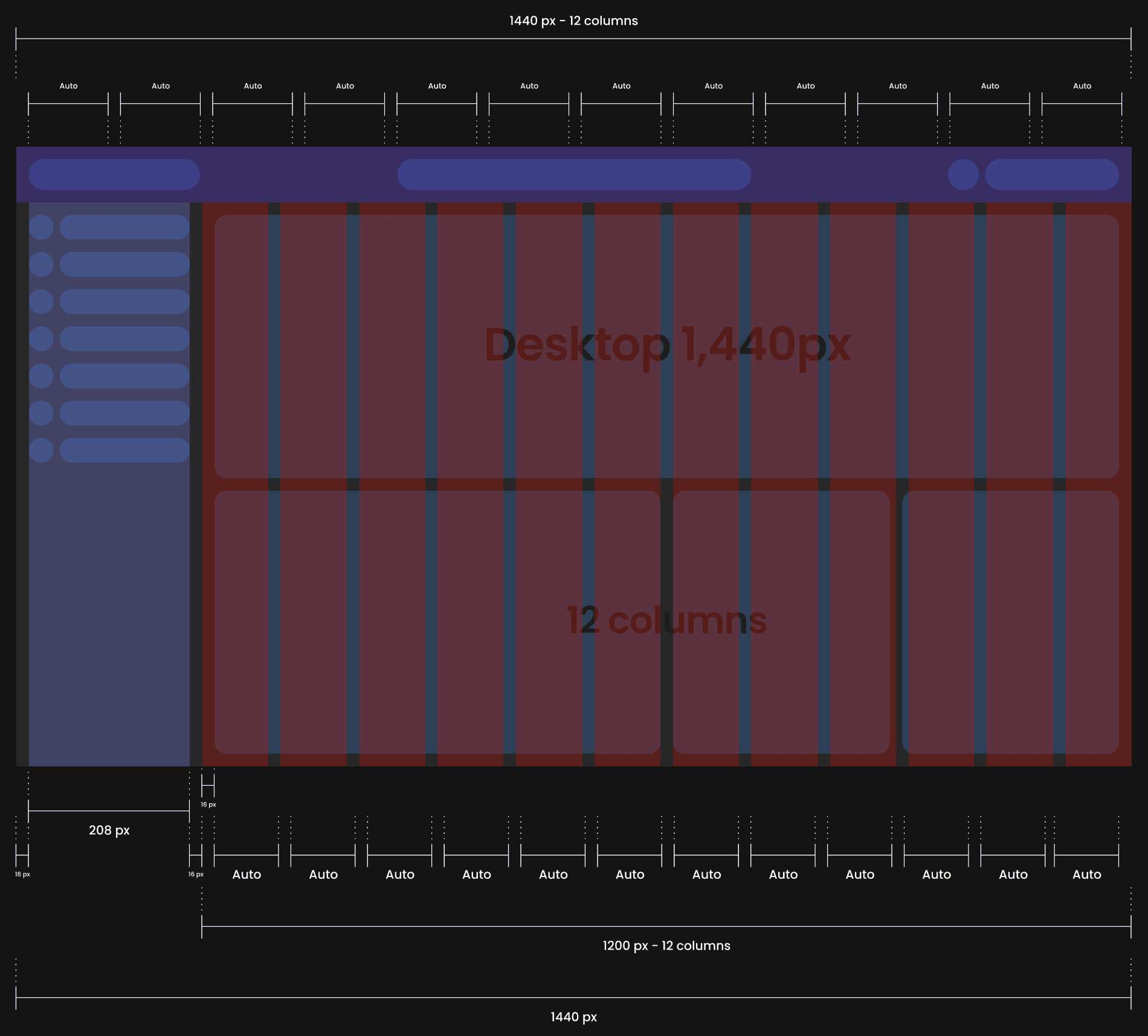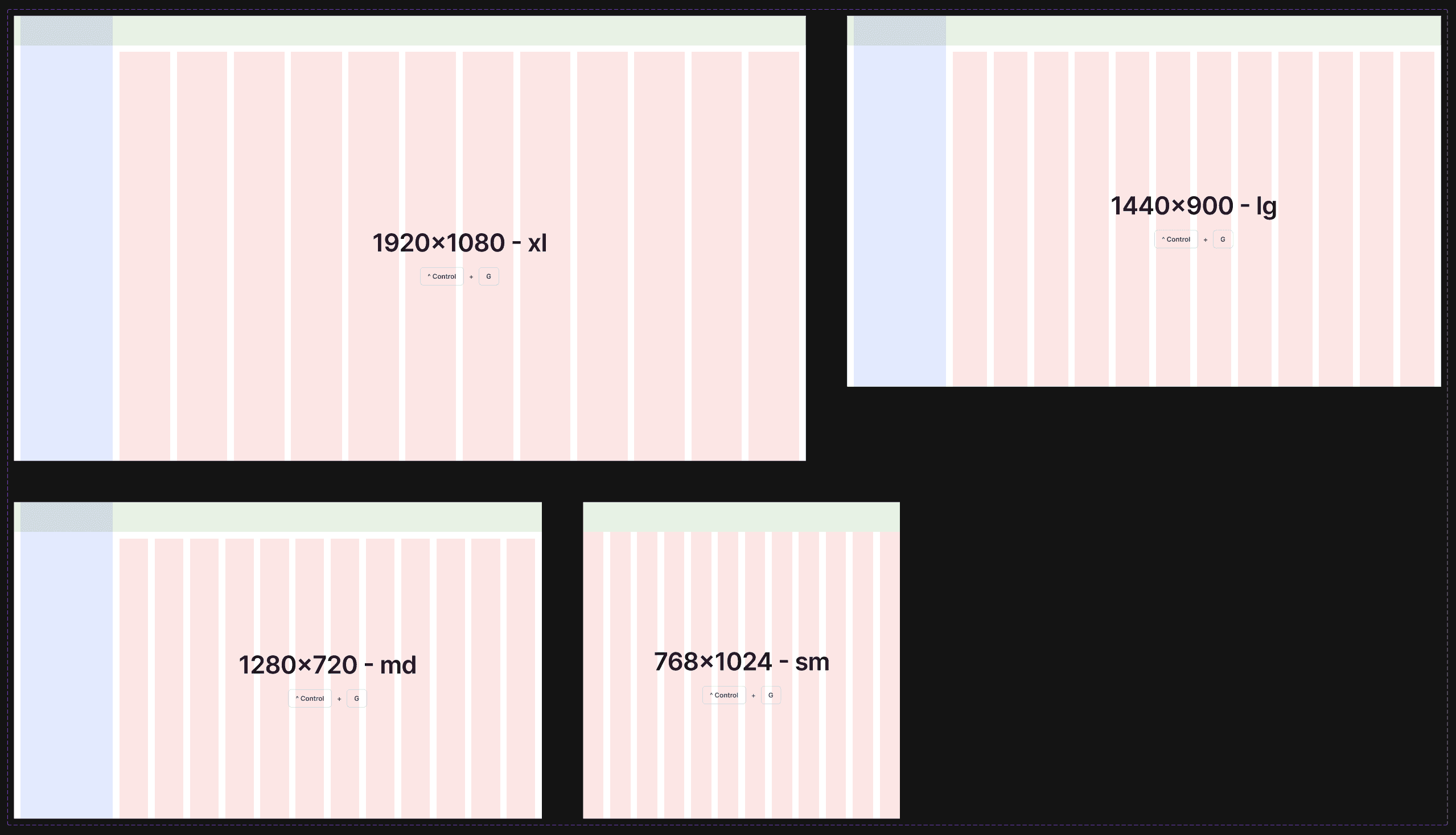 The grid defines the spatial structure and rhythm across layouts, ensuring alignment and scalability. Desktop to smaller screens, supporting a consistent rhythm between content blocks, sidebars, and cards.
