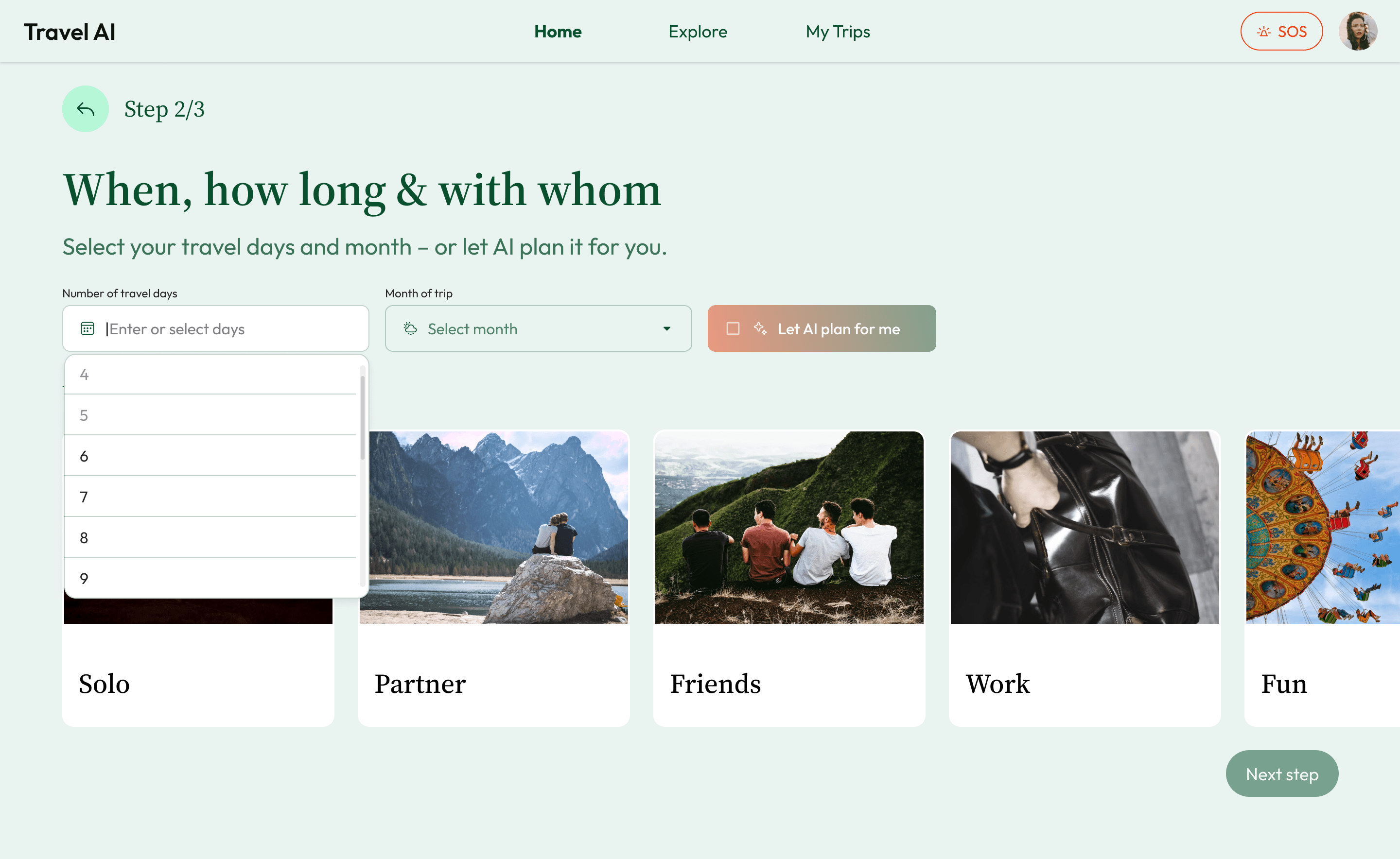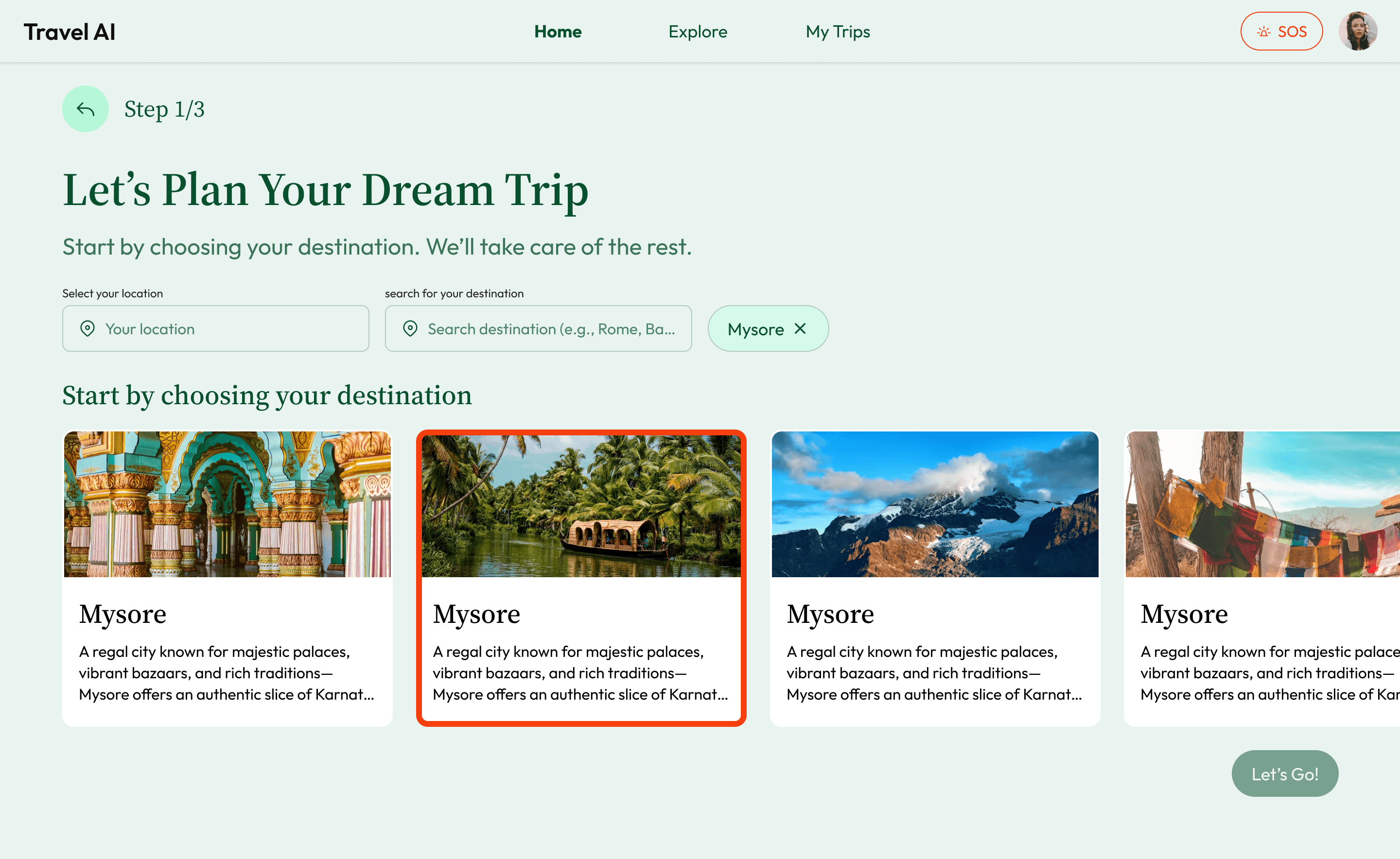 This project explores how AI can assist travel planning while keeping users in control through editable, step-based flows.